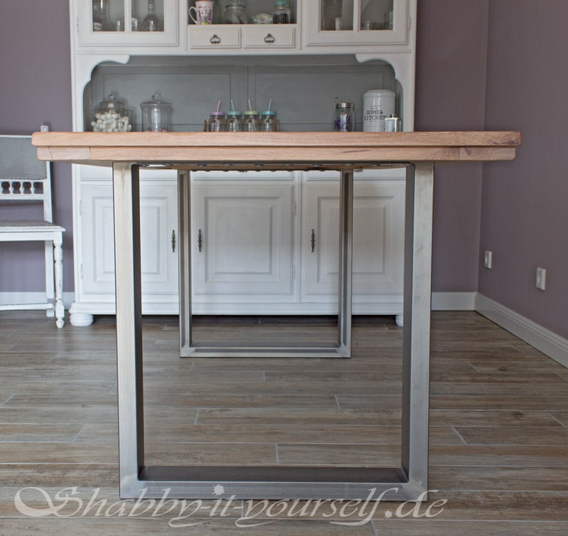 Wenn es um Tische geht, dann bin ich immer ein Fan von Echtholzoberflächen. Denn eine Tischplatte wird in der Regel stark beansprucht und eine rustikale Holzoberfläche verzeiht da um einiges mehr als beispielsweise eine mit Kreidefarbe gestrichene Oberfläche.