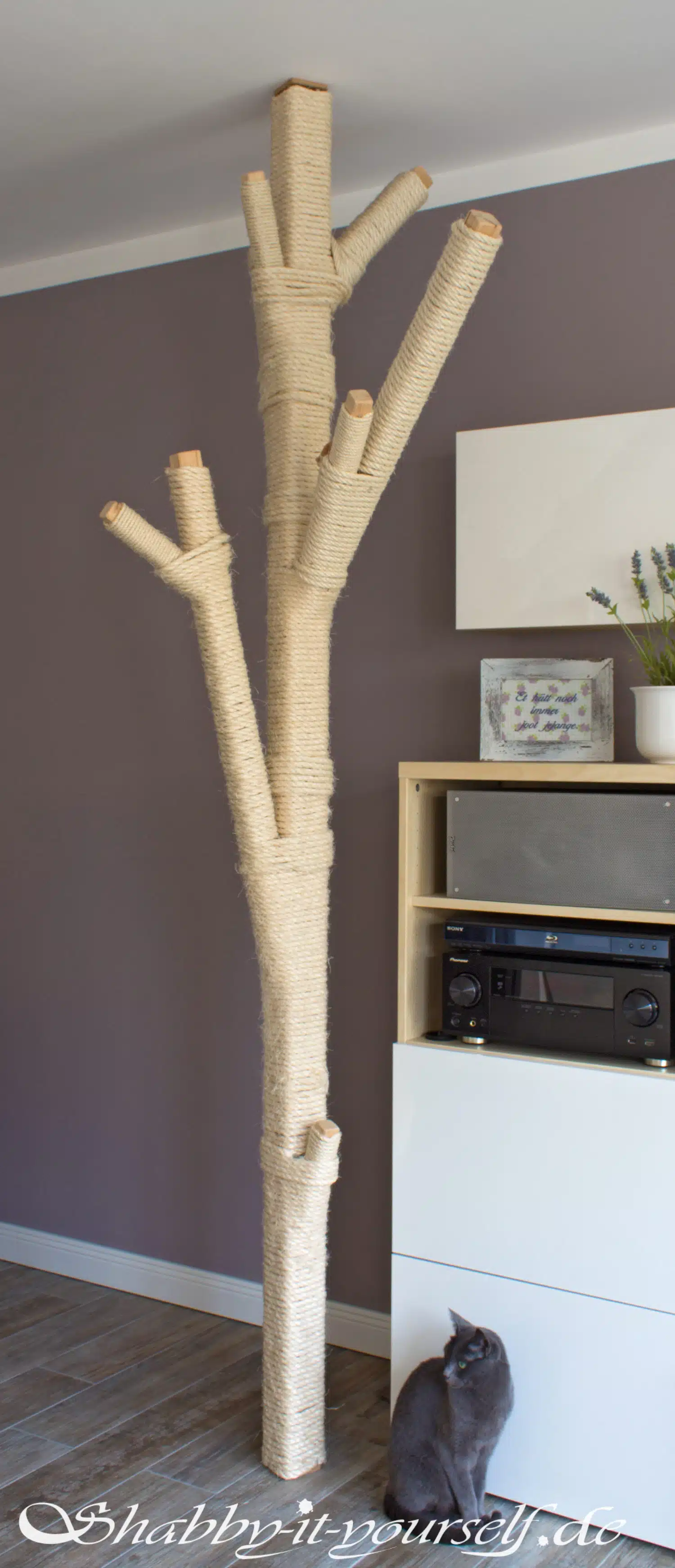 Ich wollte aber trotzdem was Schönes – etwas was ich im Wohnzimmer aufstellen kann, ohne dass jeder beim Eintreten direkt denkt „Ah, guck mal – die haben Katzen, da muss man sich sowas halt hinstellen!“. Am Ende kam mir dann die Idee: Warum nicht einfach selber einen Kratzbaum bauen? Mit Selbermachen habe ich bisher ganz gute Erfahrungen machen können. 🙂