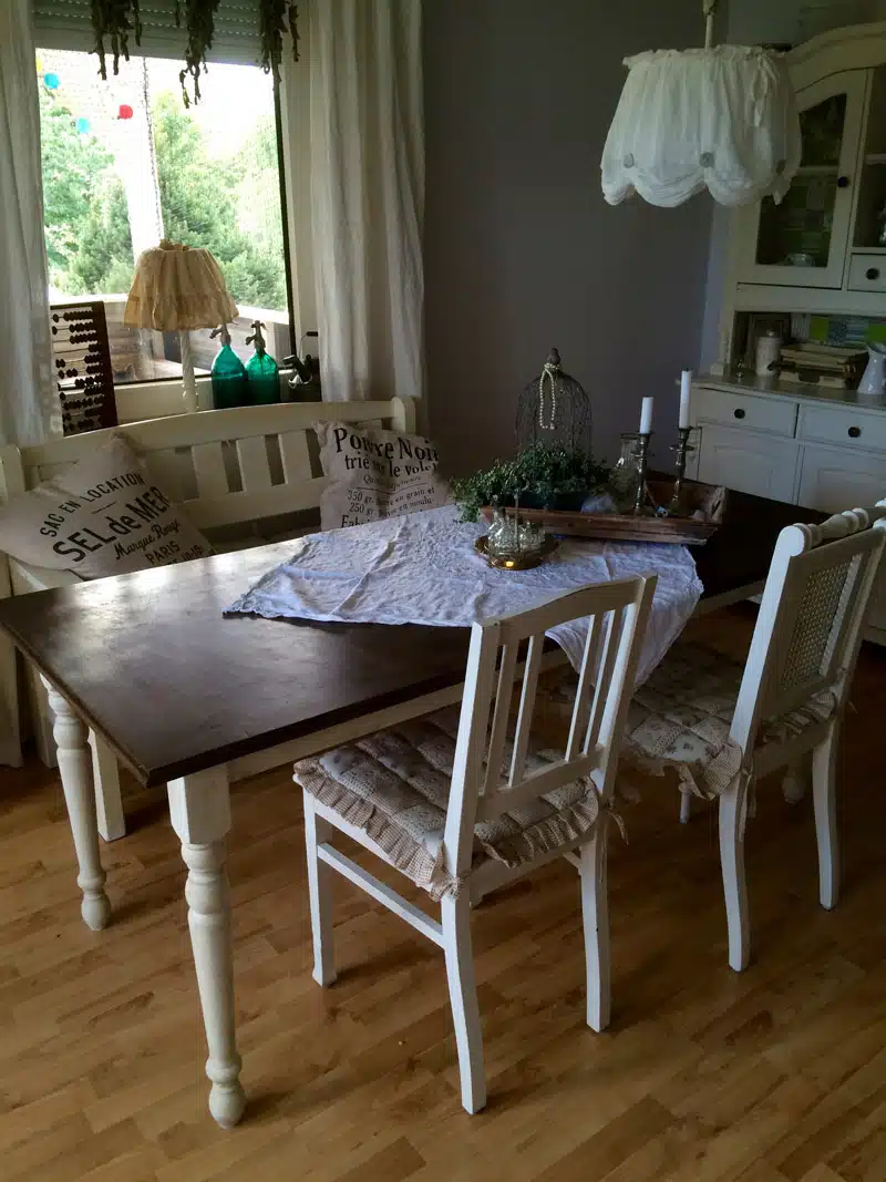 Kürzlich hat mir Rina ein paar Bilder von ihren Werken geschickt. Sie hat einen alten Kiefer-Tisch ganz toll aufbereitet, wie Ihr auf dem Bild unten sehen könnt. Gefällt mir sehr gut! 🙂