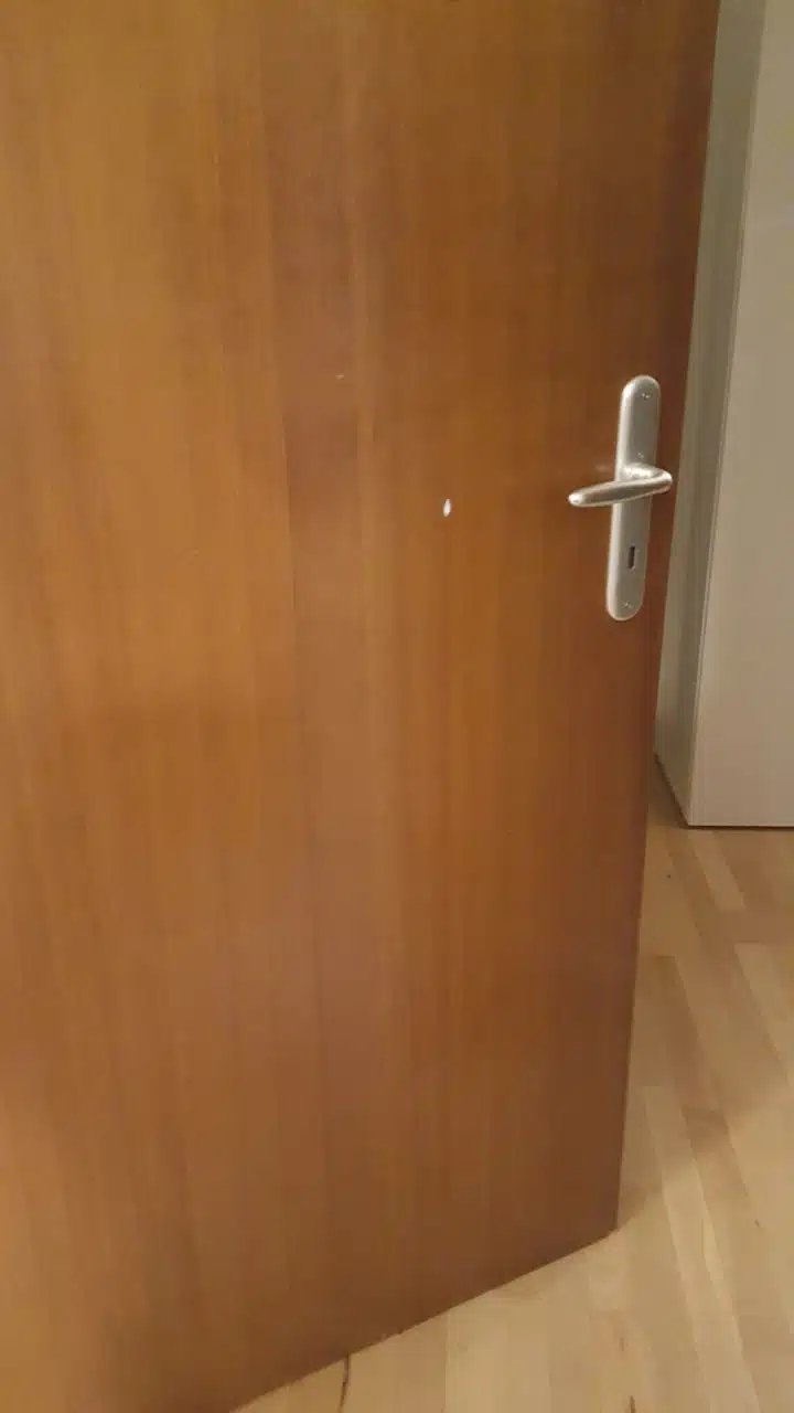 Auf dem Bild rechts könnt Ihre sehen, wie die Tür vorher aussah. Eine etwas in die Jahre gekommene alte Holztür.